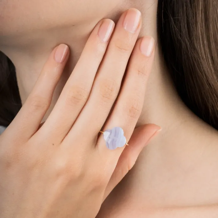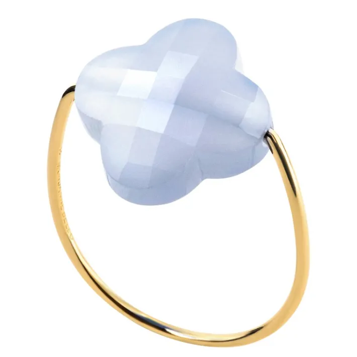 Détails : Bague Or Jaune 750, Agate Bleue Dentelle Trèfle (7.70 carats)