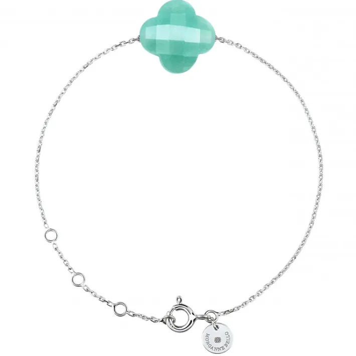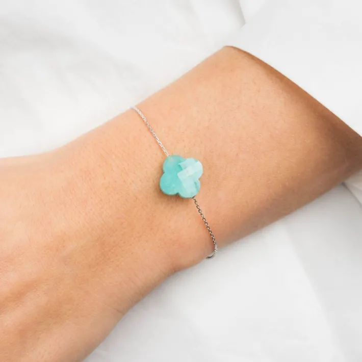 Détails : Bracelet Or Blanc 750, Amazonite Trèfle (7.35 carats)
